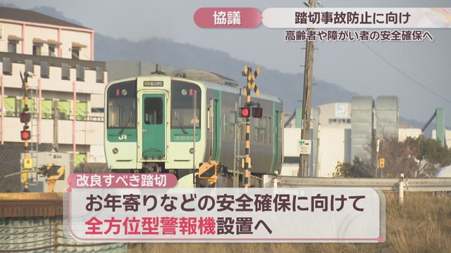 踏切事故を防ぐための会議が25日、高松市で開かれ、香川県内の5つの踏切に新たに全方位型の警報機を設置することになりました。