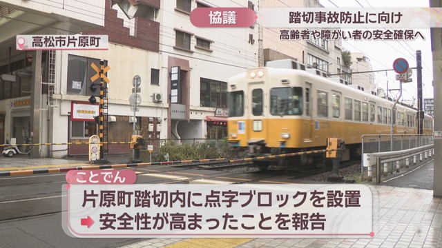 ことでんは、高松市の「片原町踏切」で踏切内に点字ブロックを設置し、安全性が高まったことを報告しました。