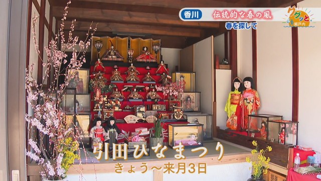 東かがわ市の引田では2月27日~3月3日まで、古い町並みにひな人形を飾る祭り「引田ひなまつり」が開かれています。