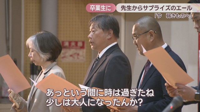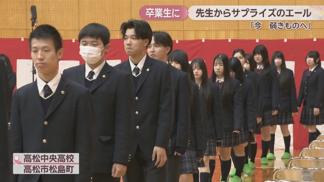 3月2日の卒業式を前に2月27日、高松市の高校で先生から3年生にサプライズのエールが送られました。