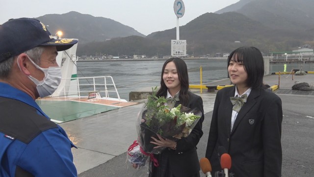 また、フェリーで通学していたのは3人で、このうち兒島静香さんらが小豆島豊島フェリーの船長らに感謝を伝えました。