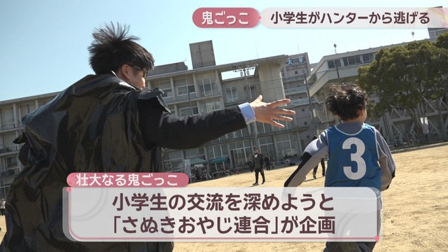 高松市で1日、小学生が大人との鬼ごっこを楽しみました。