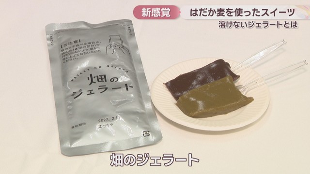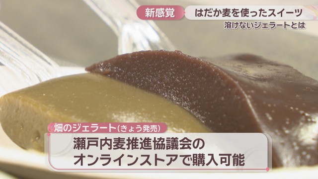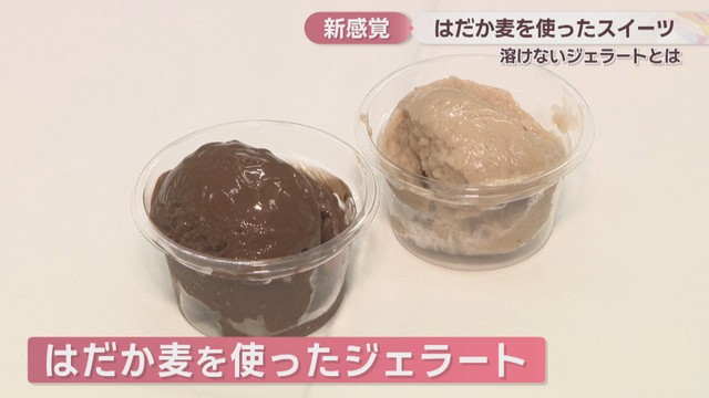 香川県で収穫した大麦の一種、「はだか麦」を使ったジェラートなどがお披露目されました。「溶けないジェラート」と銘打った新感覚のスイーツも……。