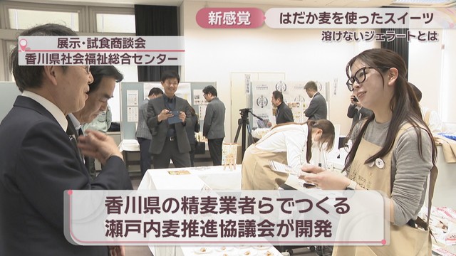 開発したのは、香川県内の精麦業者らで作る瀬戸内麦推進協議会です。香川県は温暖な気候ではだか麦の生産量は全国3位です。香川県産のはだか麦を使った新商品をPRしようと、高松市で商談会を開きました。