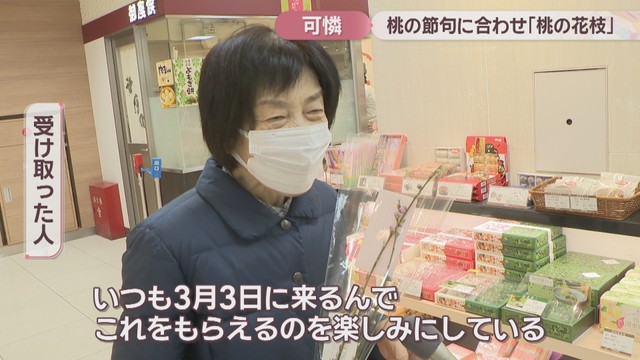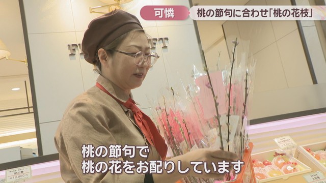 3月3日は「桃の節句」です。春の訪れを感じてもらおうと、岡山市の百貨店でかわいい桃の花が咲いた「枝」が配られました。