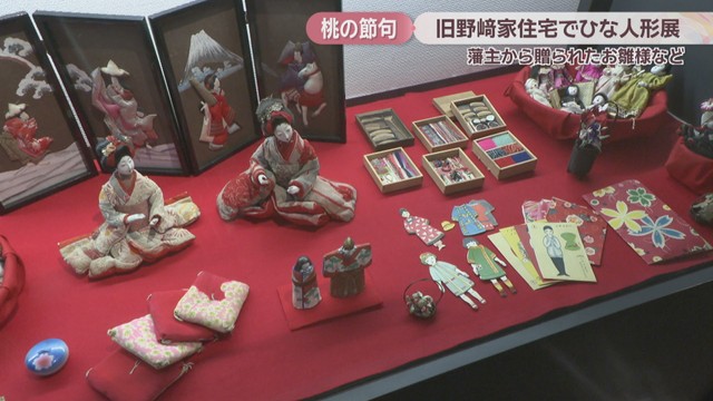 着せ替え人形など当時のおもちゃも展示されています。「野﨑家のお雛様展」は4月5日まで開かれています。