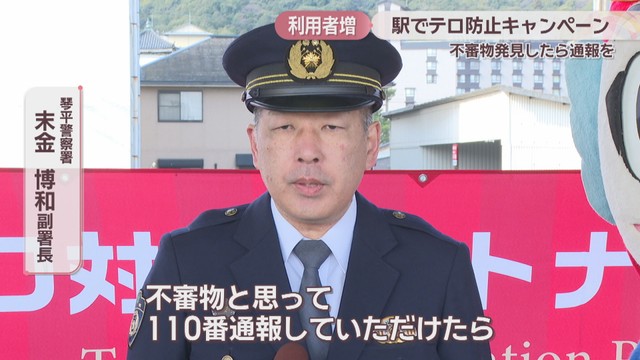 香川県警とJR琴平駅の職員、琴平町がおこなったテロ防止キャンペーンです。