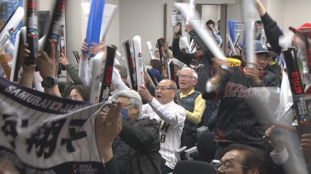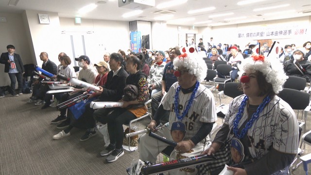 6日、備前市役所に設けられたパブリックビューイング会場では、プレイボールの直前には用意された150席がほとんど埋まり、先発のマウンドを託された山本由伸投手を熱く見守りました。