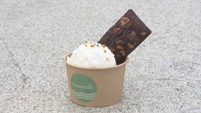 ハローアリーナ限定商品の「Nutsごろっと!?アイスdeフィナンシェ(650 円)」は、ナッツがたっぷり入ったチョコフィナンシェをバニラアイスに添えた贅沢スイーツです。