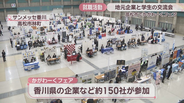 香川労働局が主催した交流会「かがわーくフェア」で、県内の企業を中心に約150社がブースを出しました。
