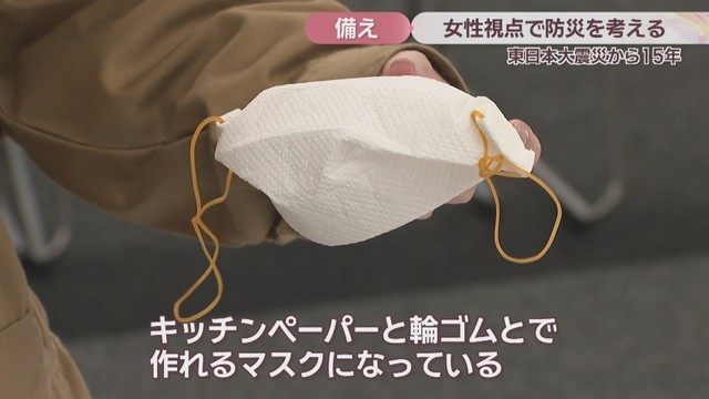 「皆さんお家にあるものだと思うんですけどキッチンペーパーと輪ゴムとで作れるマスクになっています」