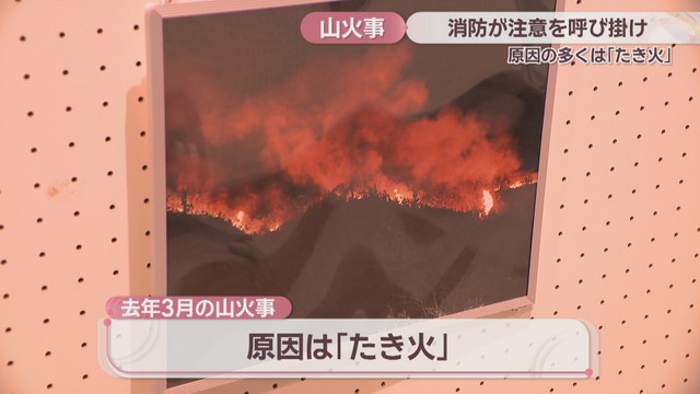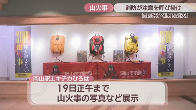 JR岡山駅などで岡山市消防局が啓発活動を行いました。チラシを配り、山火事に注意するよう呼び掛けました。