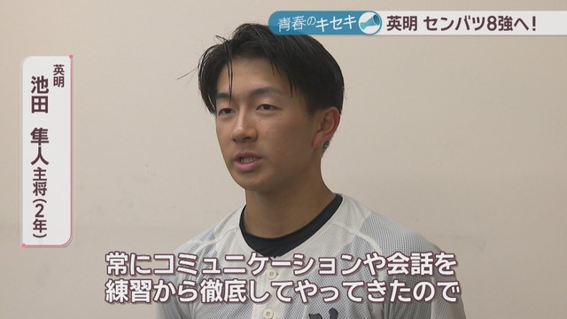 「きっちりバントを決めたりとかエンドラン、走塁面とか英明らしい細かい野球ができるようにやっていきたいです。(目標は)ベスト8っていうところなんですけど、ベスト8以上を目指してやっていきたいと思ってます」