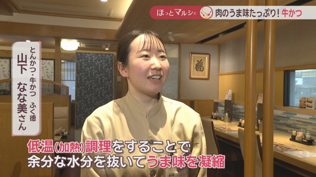 「低温調理をすることによって、余分な水分を抜いてうま味を凝縮して、サクサクなのにジューシーな牛カツをお客様に提供しております」
