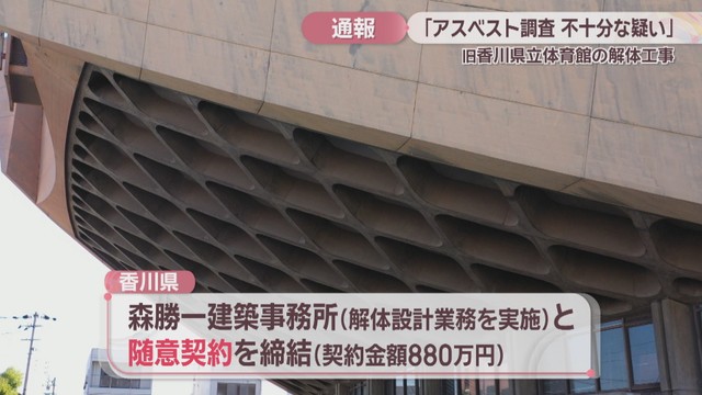 旧香川県立体育館の解体工事を巡り、法律で義務付けられている「アスベストの調査が不十分な疑いがある」として、民間団体が17日、高松市と労働基準監督署に通報しました。