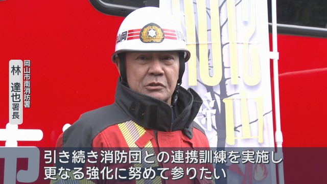 岡山市南区で発生した県内過去最大規模の山火事から23日で1年です。火事があった現場で消防訓練が行われました。