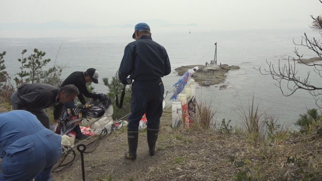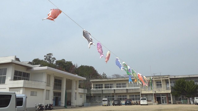 香川県土庄町の戸形崎沖で、地元の行事などを運営するボランティア団体が29日、「こいのぼり」30匹を取り付けました。