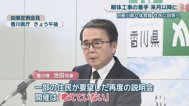 香川県の池田豊人知事は30日の定例記者会見で、旧県立体育館の解体工事の着手が年度をまたぎ、2026年4月以降になることを明らかにしました。