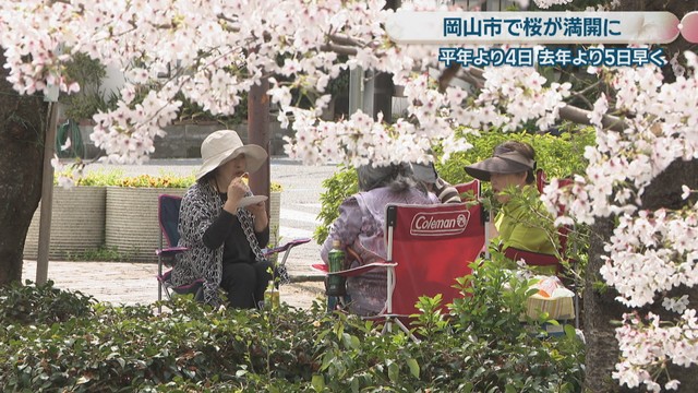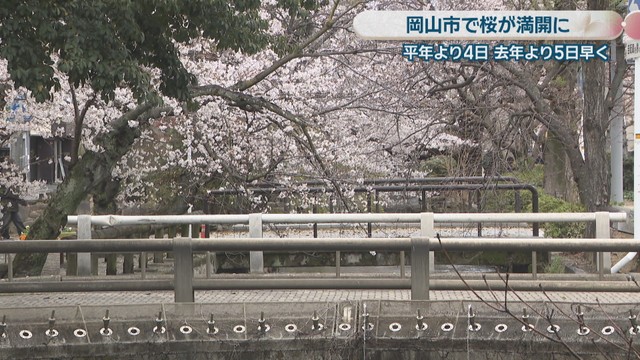 岡山地方気象台は、岡山市の桜が平年と比べて4日、2025年と比べて5日早く満開を迎えたと発表しました。