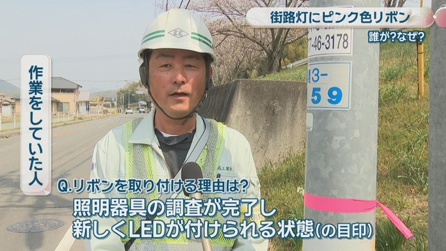 3月頃から香川県坂出市などでピンク色のリボンが結ばれた街路灯を見かけるようになりました。なぜリボンを結んでいるのでしょうか?