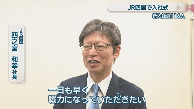 4月1日、官公庁や民間企業では入社式が行われました。民営化40年目の節目を迎えたJR四国には116人が入社しました。