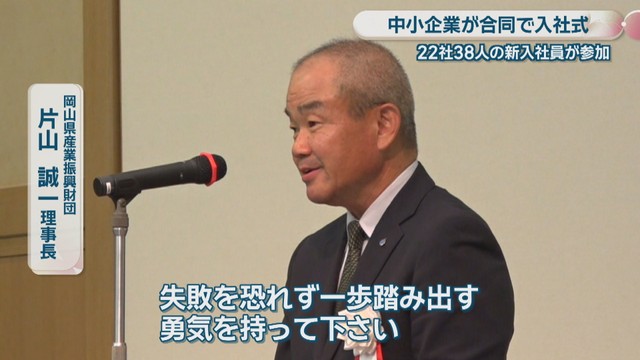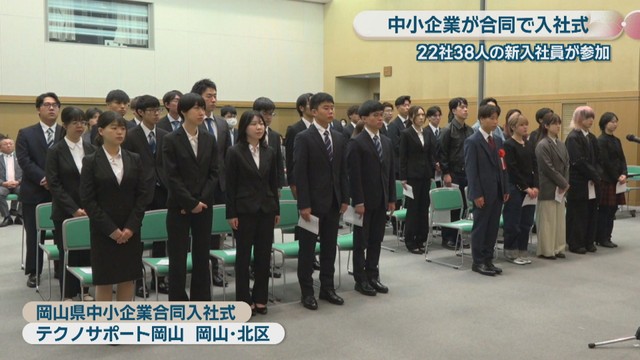 岡山市で2日、中小企業の合同入社式が開かれました。