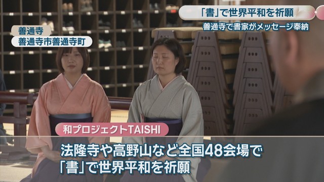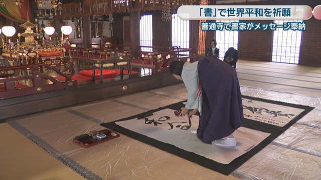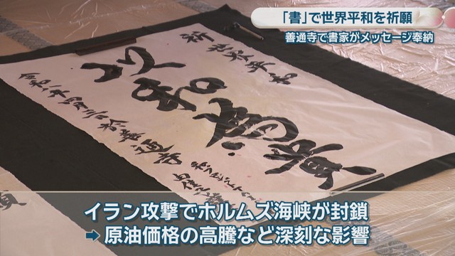 ウクライナやイランなど世界情勢が混沌とし、物価高やガソリン価格の高騰など私たちの生活にも影響が出ています。「書」で世界平和を祈る行事が3日、香川県善通寺市の寺で行われました。