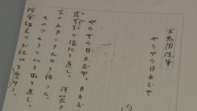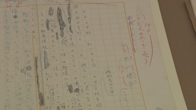 備中国・現在の笠岡市出身の小説家、木山捷平が学生時代の思い出をつづった原稿も展示されています。木山は、現在の矢掛高校にあたる矢掛中学校に通っていて、生徒の3分の1は広島県から来ていたと記しています。