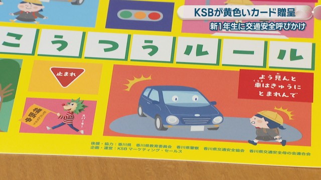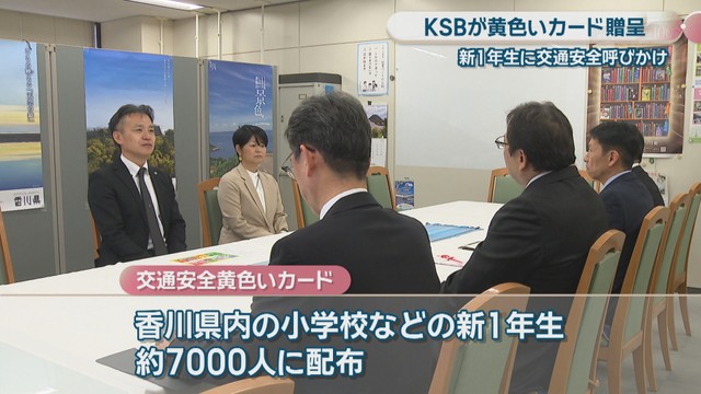 香川県の小学1年生に交通安全を呼びかける「黄色いカード」の贈呈式が7日、行われました。