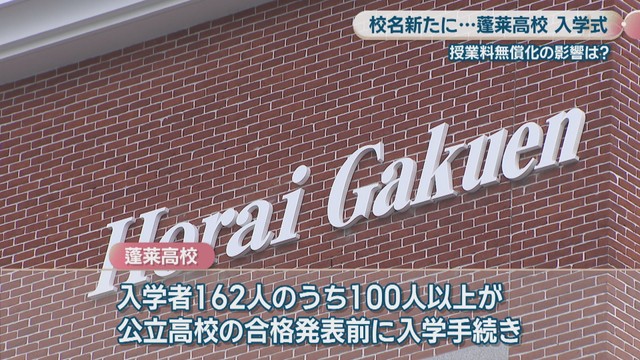 蓬莱高校では2026年度、入学者162人のうち100人以上が公立高校の合格発表前に入学手続きをしていて、例年よりも多かったということです。