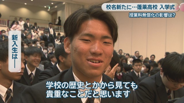 蓬莱高校の入学者数は、藤井高校だった2025年度より約20人増えました。学校では校名変更の効果もありますが、国による「高校授業料の無償化」が大きいとみています。