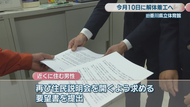 7日午前、近くに住む男性が香川県教委の保健体育課を訪れました。そして、近隣の10世帯を代表して、再び住民説明会を開くよう求める要望書を提出しました。男性は知事に手渡したいと求めましたが、県教委の担当課が応じることになったということです。
