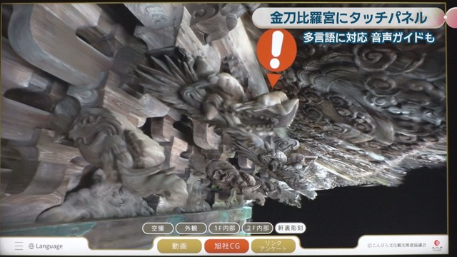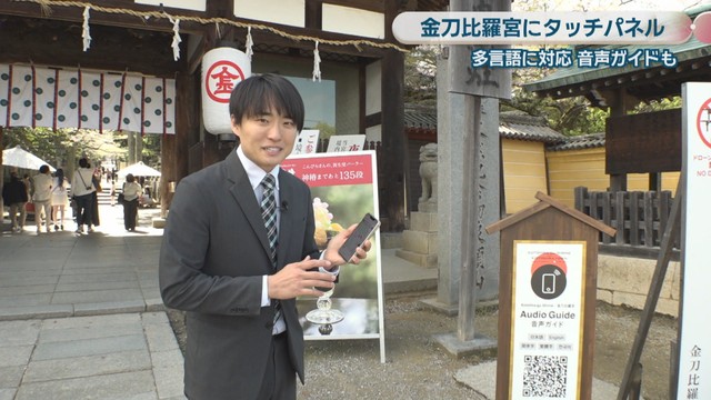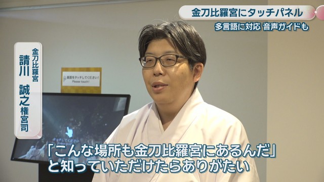 金刀比羅宮での観光をより楽しんでもらおうと、日本語はもちろん、英語や中国語の動画で分かりやすく解説してくれるタッチパネルが設置されました。