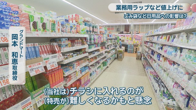 岡山市のスーパーでは、業務用のラップやフィルムのメーカーから値上げの通知があったそうです。