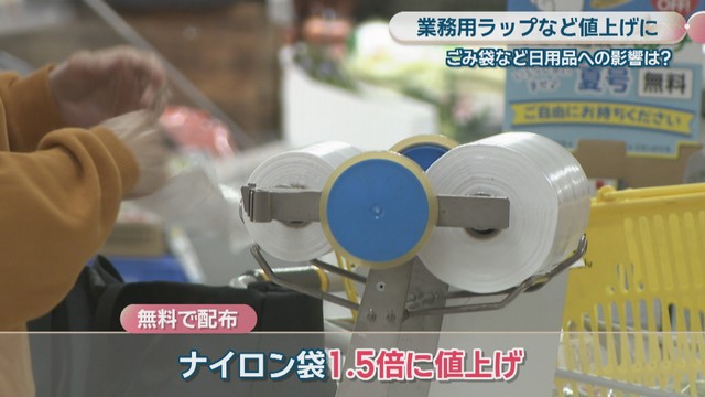 この他、無料で配布しているナイロン袋も1.5倍ほど値上げすると通知があり、店では1枚5円で販売しているレジ袋などにも今後、影響が出てくるのではないかとみています。