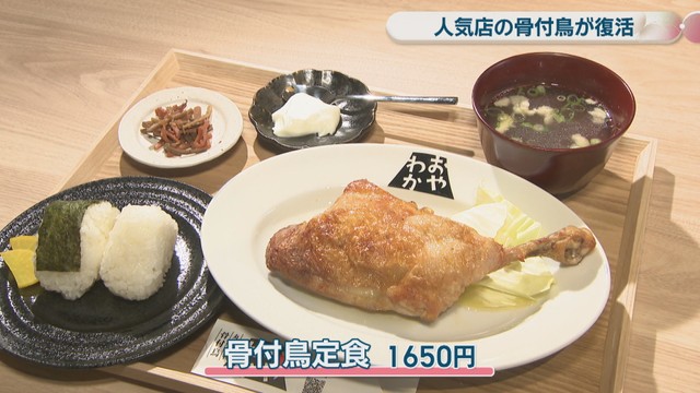 ランチにはおにぎりがついた「骨付鳥定食」(1650円)を提供します。