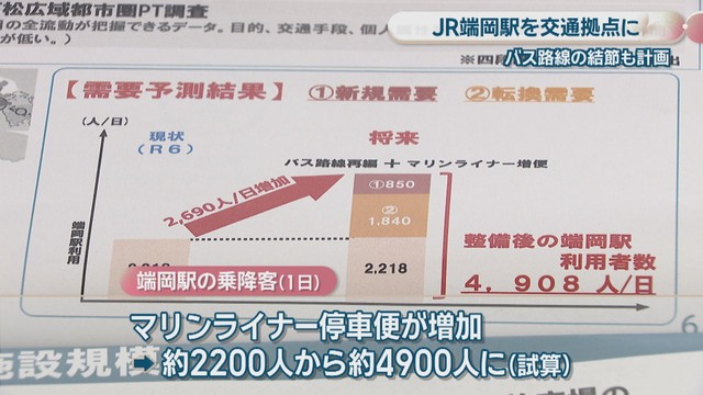 基本構想ではマリンライナーの停車便が増えるなどして端岡駅の1日当たりの乗降客が現在の約2200人から、約4900人に増えると試算されています。