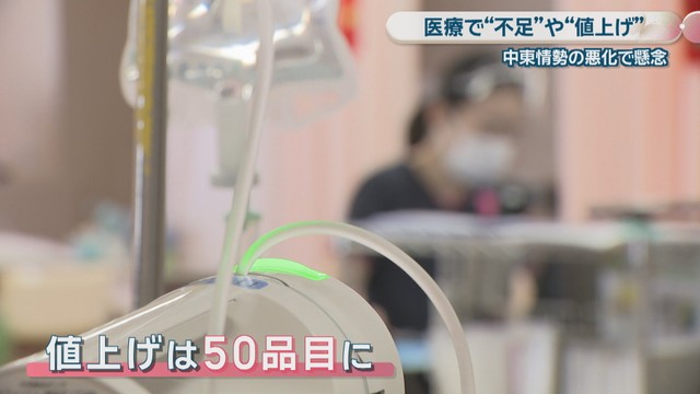 病院によりますと、医療資材については、中東情勢の悪化などにより値上げも行われ、その数はすでに50品目に上ります。