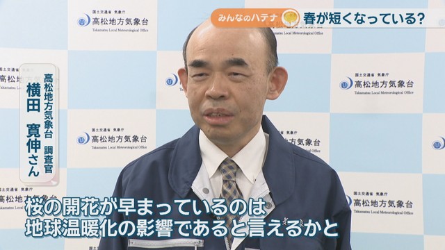 「桜の開花が早まっているのは地球温暖化の影響であると言えるかと思います」