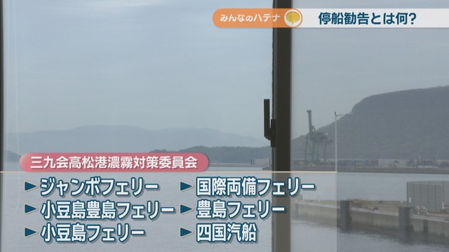 「高松港から見まして、大体500m以内まで霧がかかりましたら『三九会』で停船勧告をかけております」