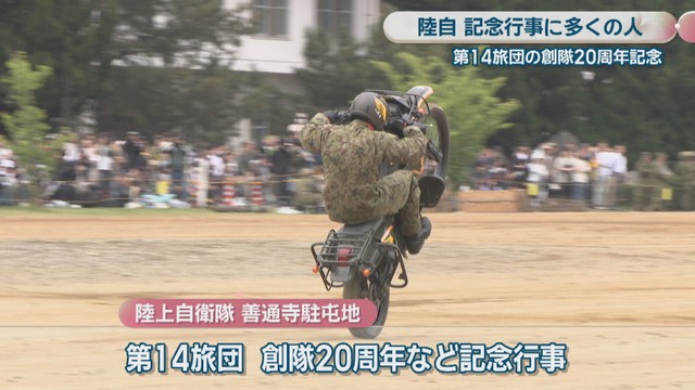 陸上自衛隊 記念行事に多くの人 第14旅団創隊20周年 「グリーンインパルス」によるバイクアクロバット演技など披露 香川・善通寺