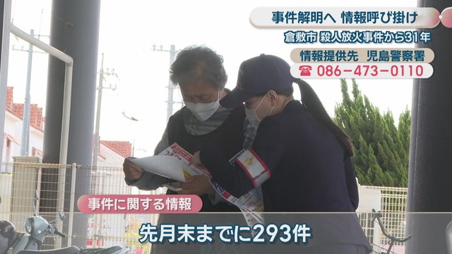 岡山県倉敷市で高齢の夫婦が殺害され放火された事件の解決に向け、警察官が情報提供を呼び掛けるチラシなどを配りました。