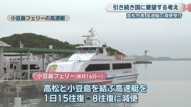 5月から高松と小豆島を結ぶ高速艇が減便することを受けて、高松市の大西市長は引き続き国に支援を要望する考えを示しました。