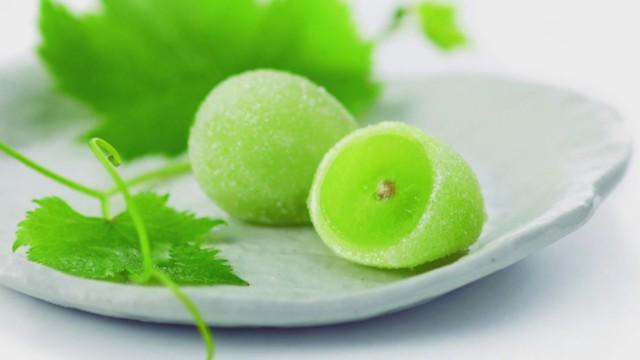 収獲したマスカット・オブ・アレキサンドリアは、1粒丸ごと求肥で包む人気商品、「陸乃宝珠(りくのほうじゅ)」に使います。