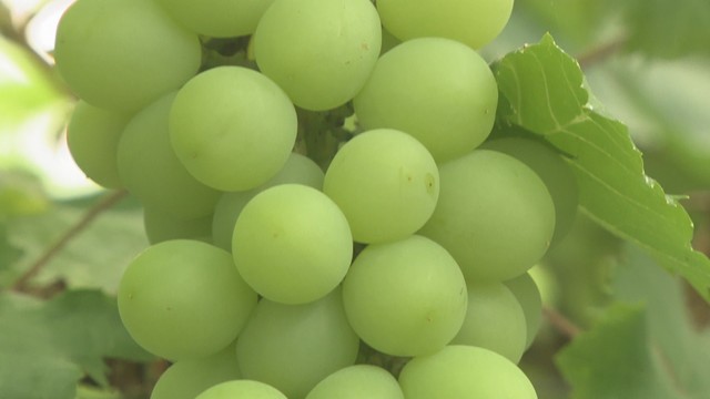 上品な香りとさわやかな酸味、さっぱりとした甘さのマスカット・オブ・アレキサンドリア。和菓子の製造・販売などを行う源吉兆庵グループは、商品に使う素材を安定して確保するため、岡山市南区の自社農園で栽培しています。28日、今シーズンの収獲を始めました。