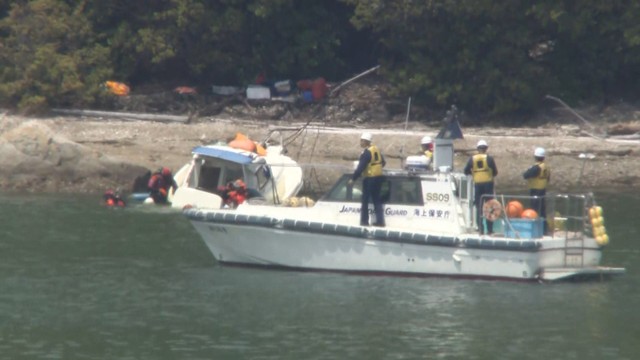 小型船は一時海に船首だけが出た状態で沈んでいましたが、ほかの船によって安全な場所に引き上げられました。消防が船内から男性1人を救助しましたが、心肺停止の状態だということです。