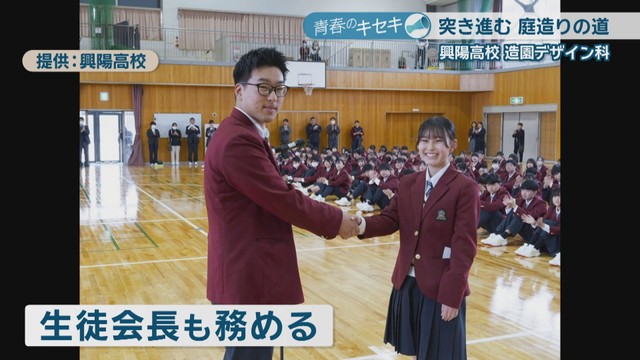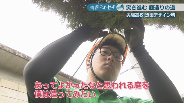 興陽高校造園デザイン科3年の近藤吉平さん。中学生の時「植物」と「ものづくり」に関心があり、県内で唯一造園を学ぶ専門学科がある興陽高校の門を叩きました。
